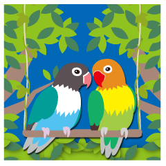 鮮やかな羽毛と丸い目が魅力のボタンインコのスタンプ!